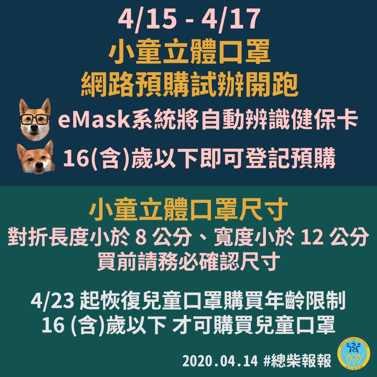 小童立體口罩4/15~4/17網路預購試辦開跑囉!