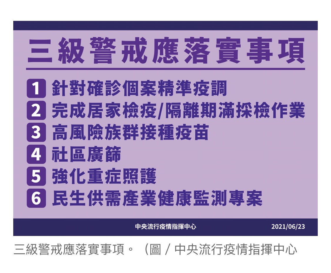請全國民眾持續落實遵循並積極配合三級警戒管制措施,共同努力防疫工作。