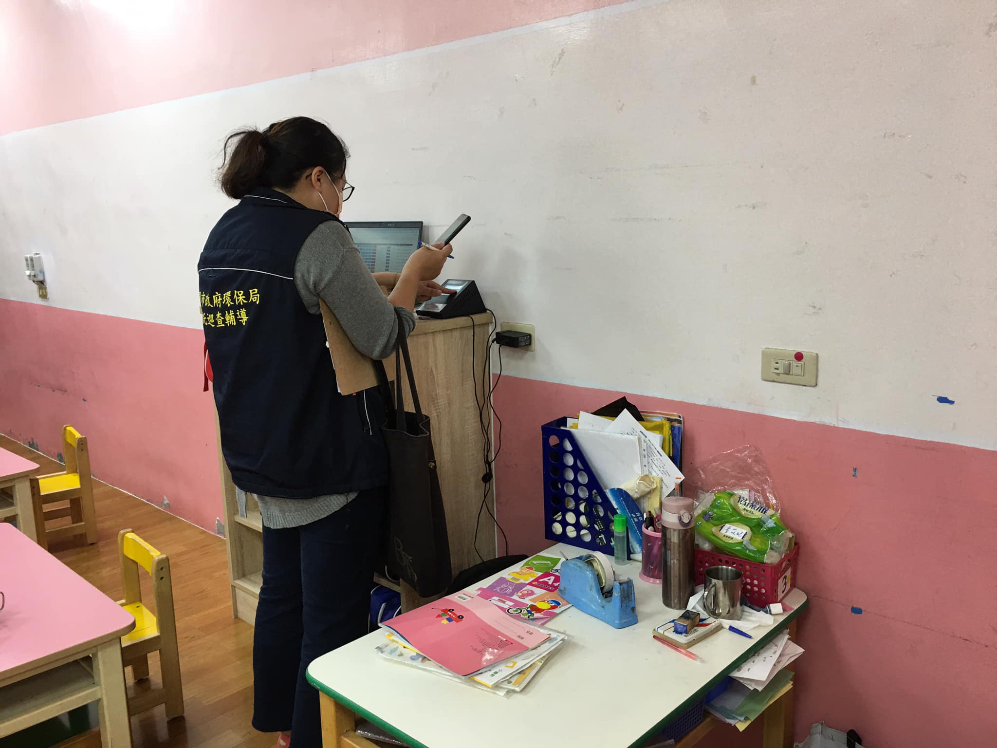 今天早上,桃園市政府環保局委託巡查人員到本園檢測室內空氣品質。