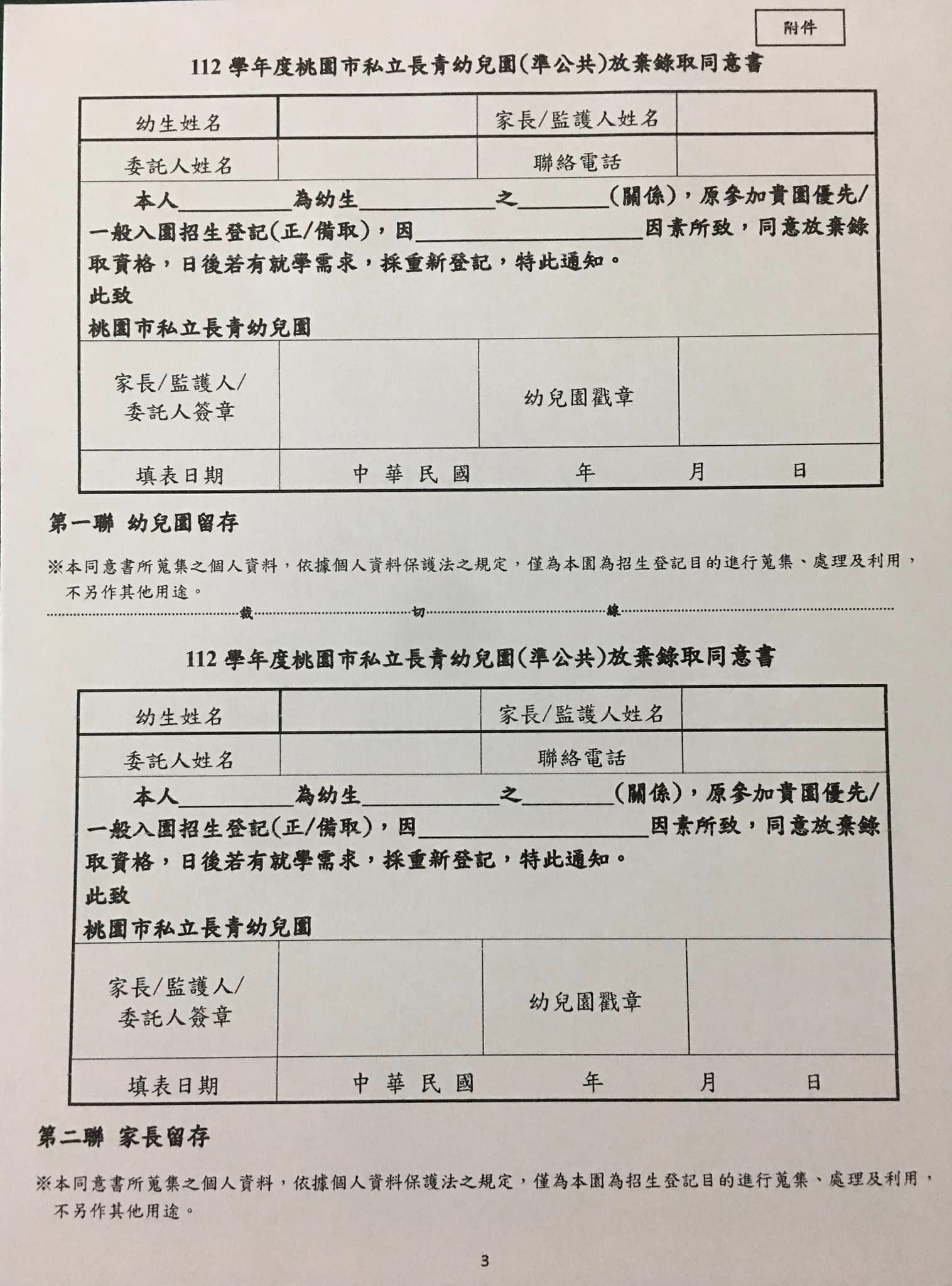 敬請帶戶口名簿影本或需證明之文件,親自到本園,登記填寫資料。