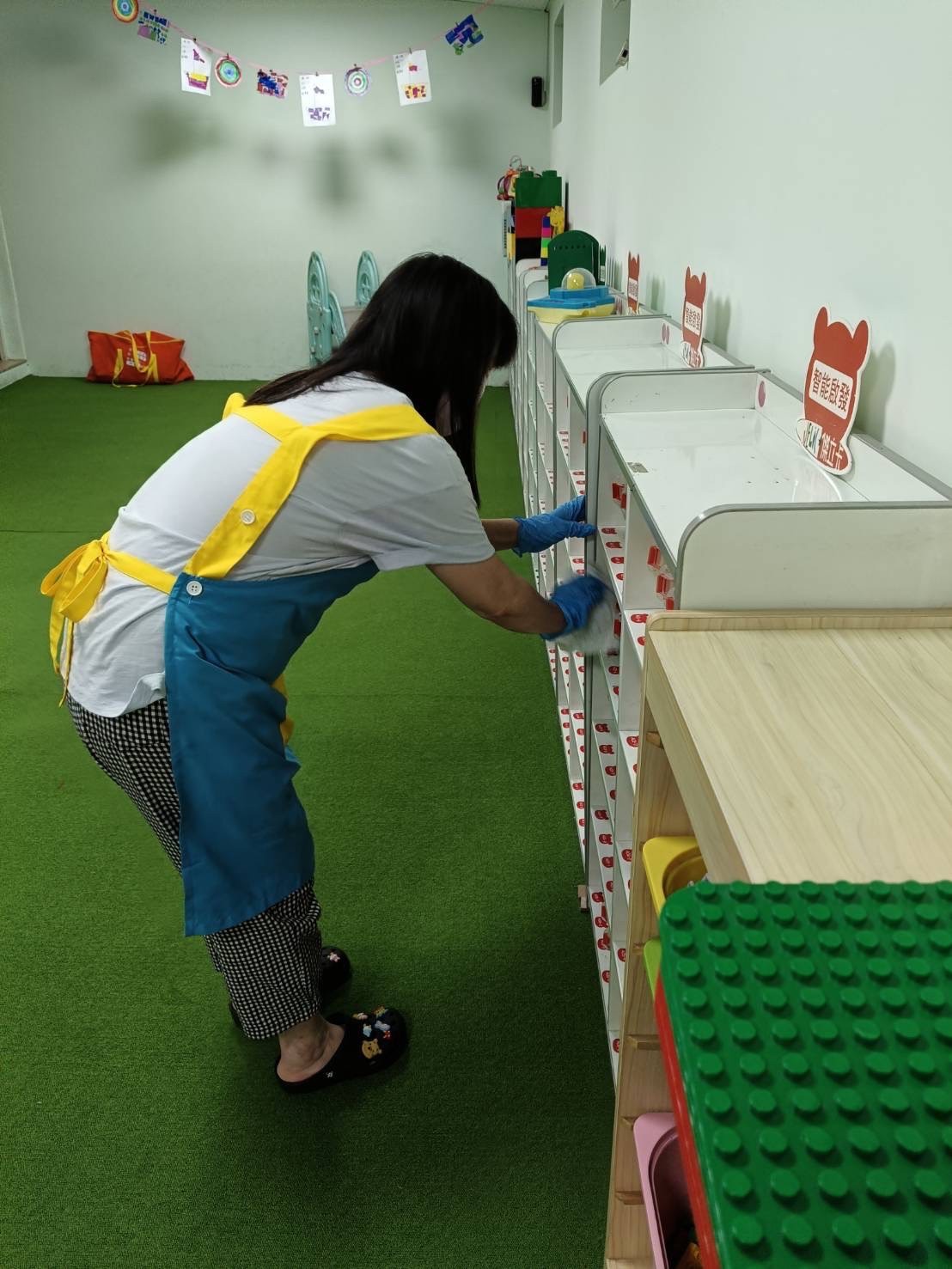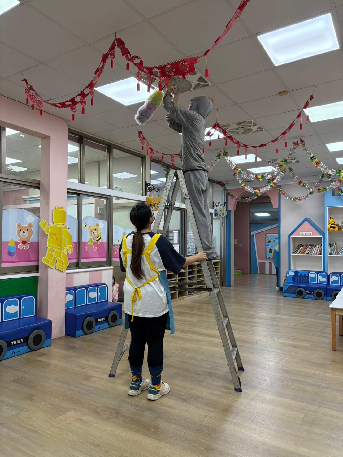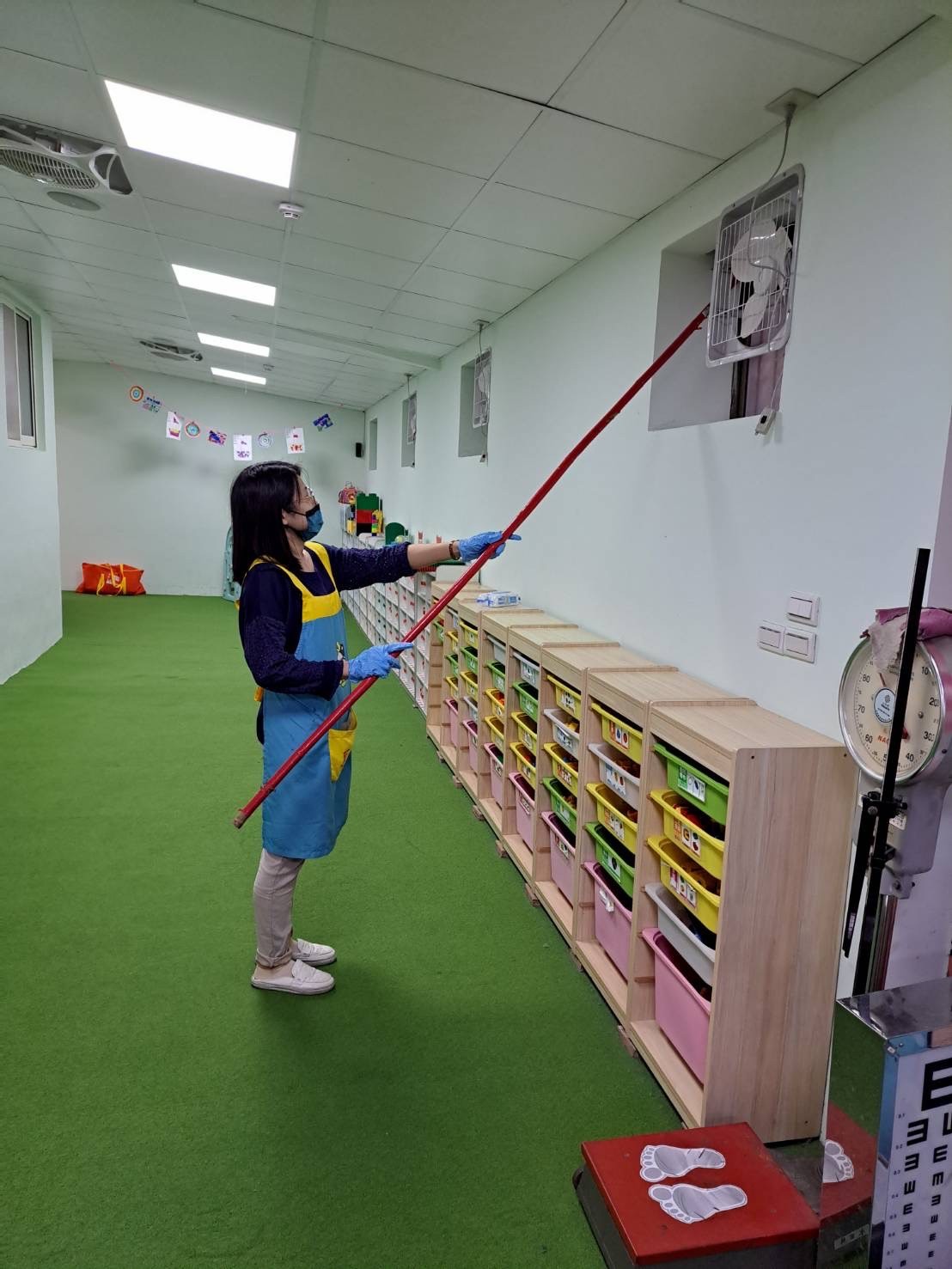 老師們認真的將全園角落打掃乾淨,讓寶貝們在優良的環境學習、成長!
