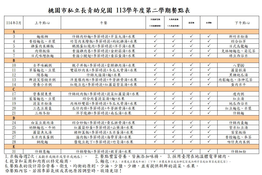 113學年度3月份菜單