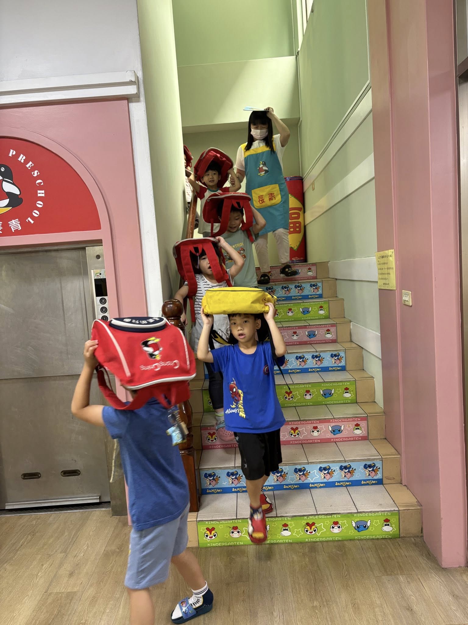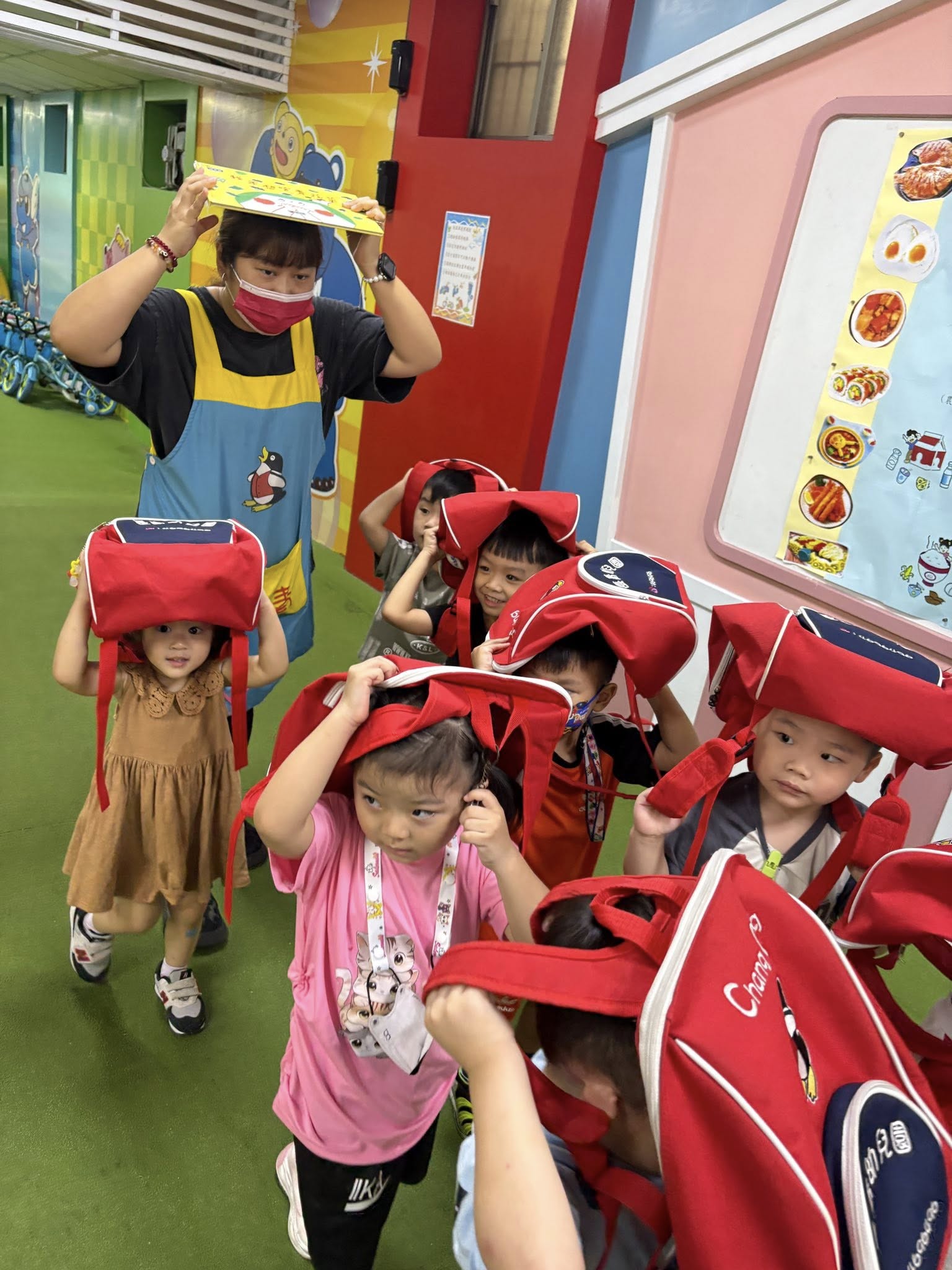全園老師們和寶貝們,防震演練學習成功!