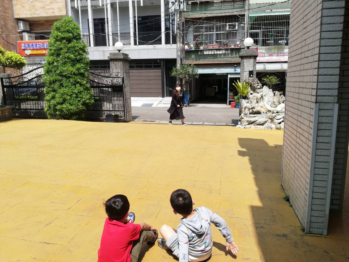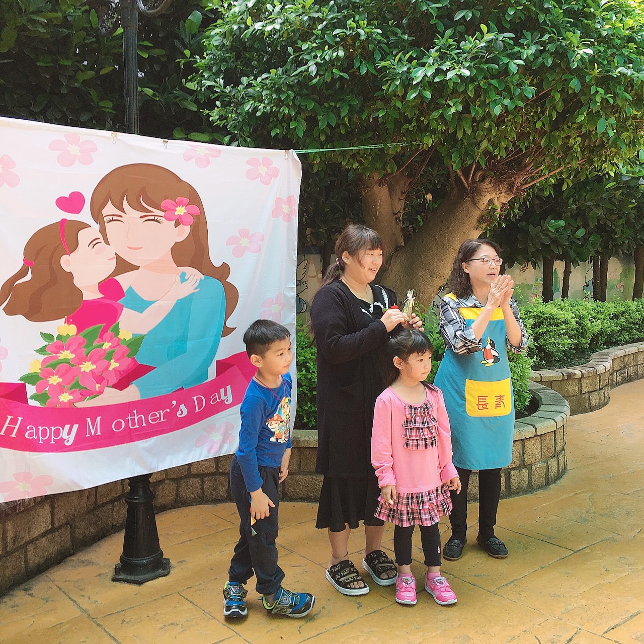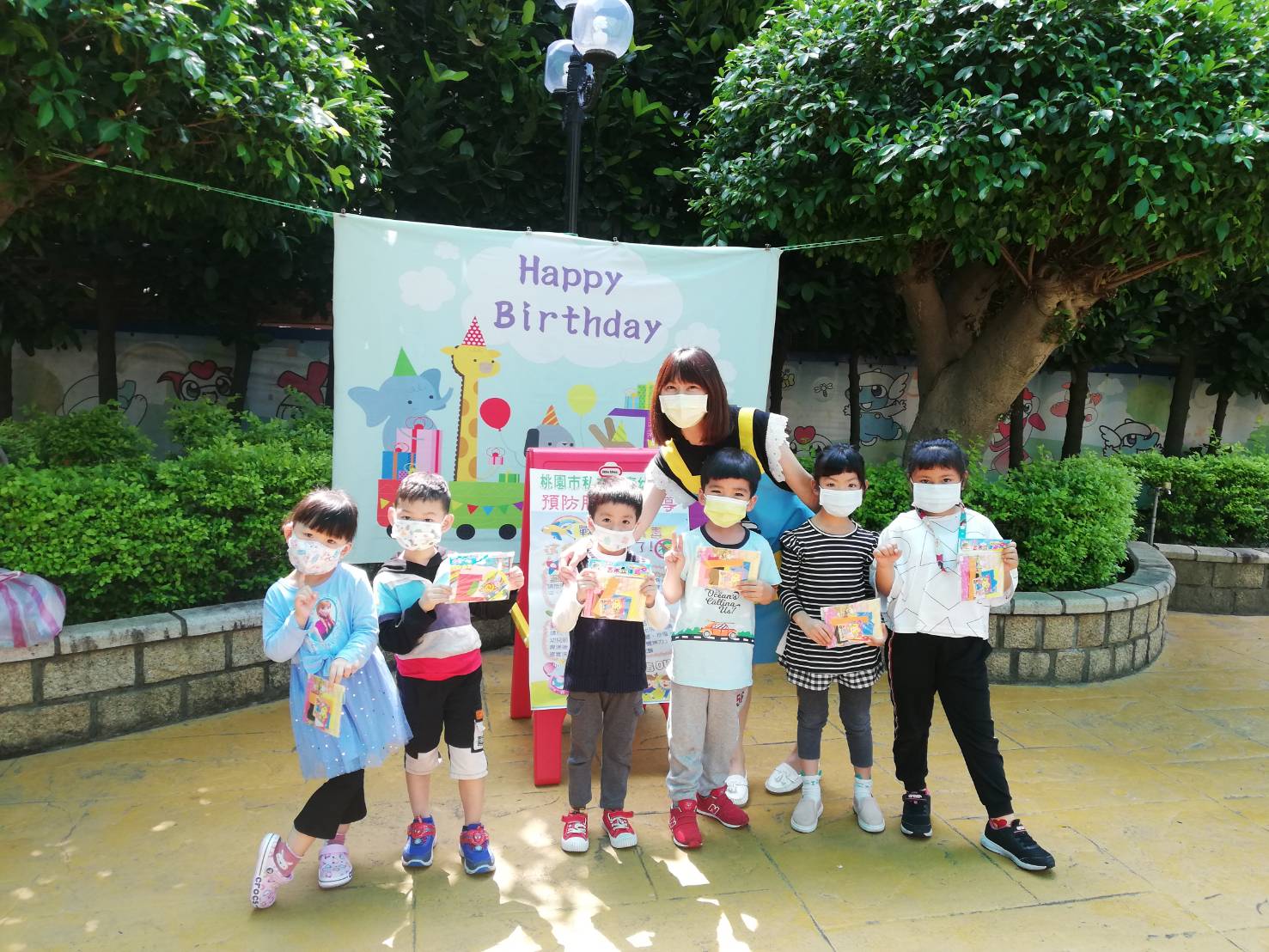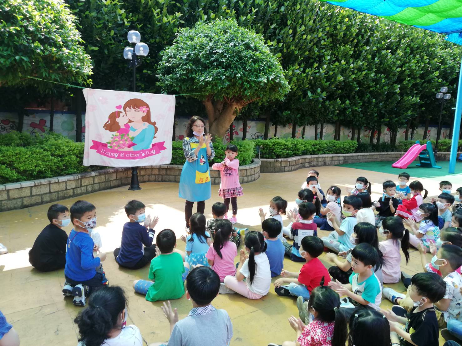 師生在長青幼兒園裡,開開心心