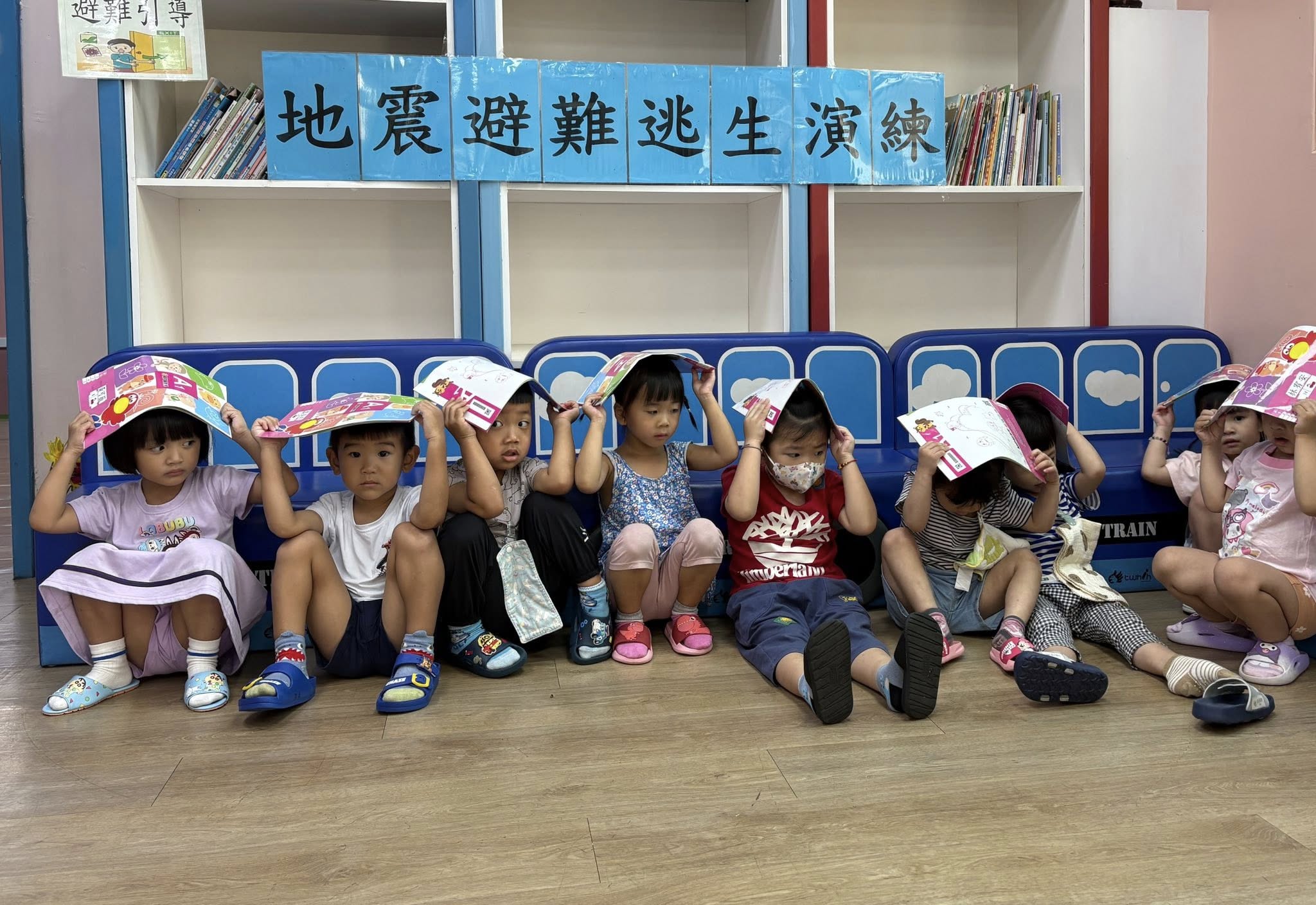 全園老師們和寶貝們,防震演練學習成功!